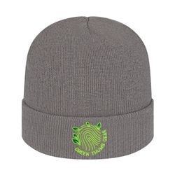 The pro rib Tomkin knit cap with cuff featuring recycled polyester blend containing 50% post-consumer recycled content and 50% acrylic.
